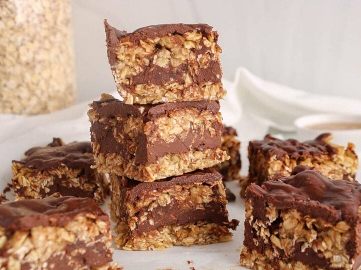 No Bake Peanut Butter Chocolate Oatmeal Bars (Vegan)