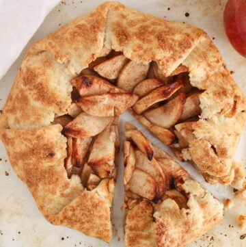 - Cornstarch: helps thicken the apple filling slightly so it does not turn watery or too juicy when slicing the galette. You can use arrowroot powder or completely omit it as well.